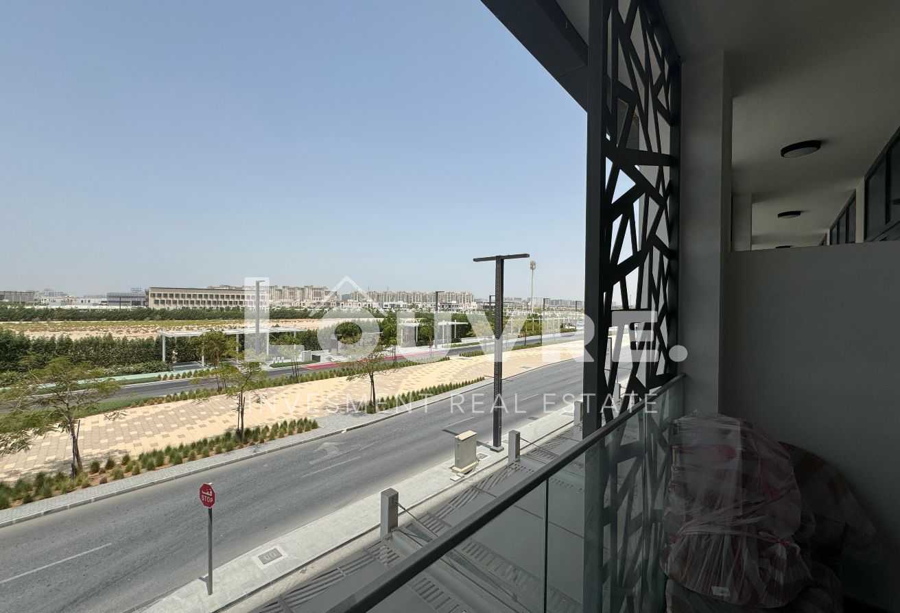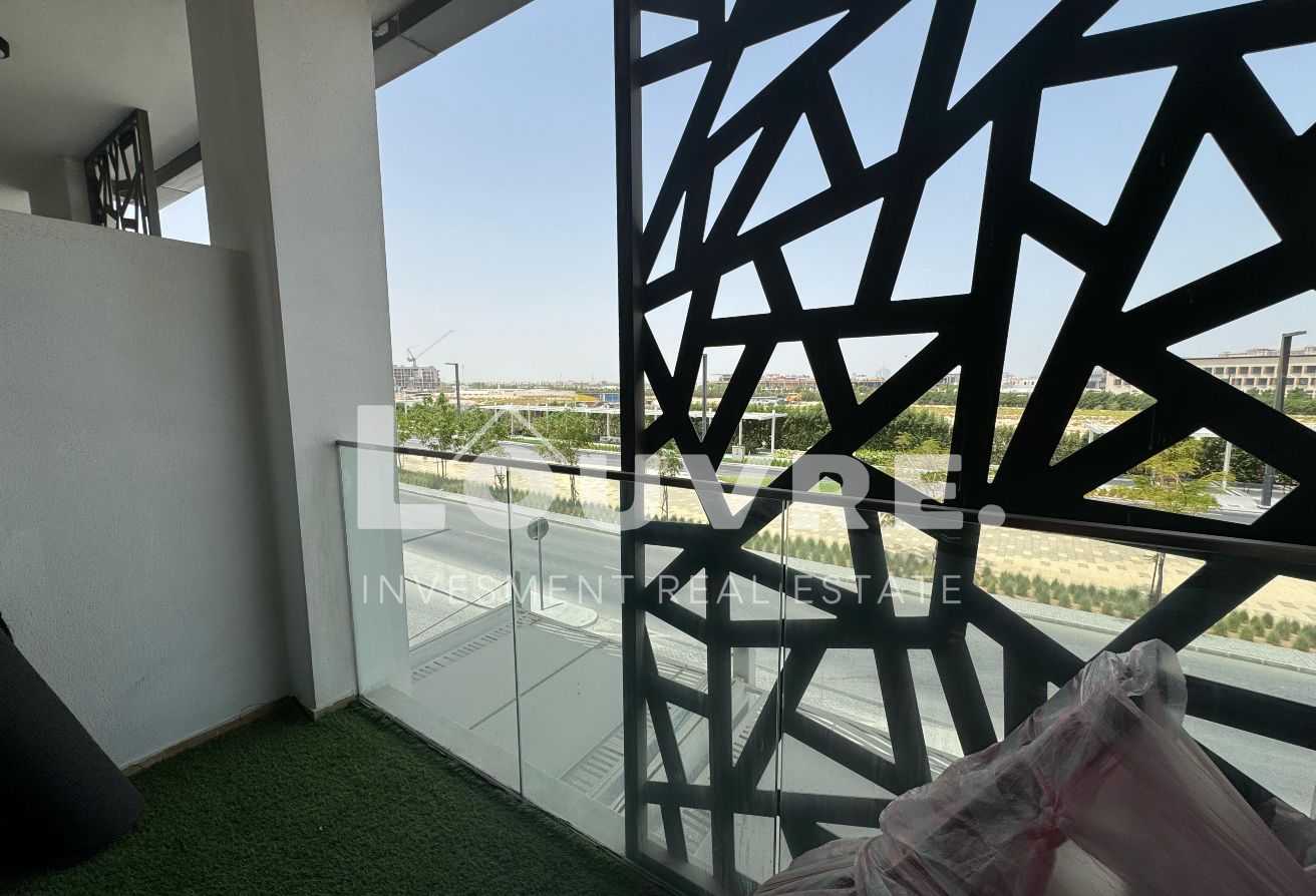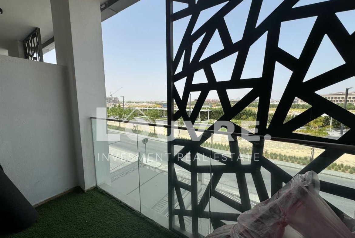 The balcony provides a pleasant outdoor space to unwind while enjoying views of Masdar City’s innovative urban landscape. The high floor position ensures a quieter living environment with better natural light.